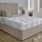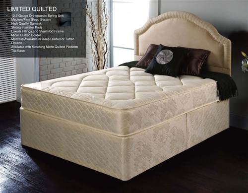 The Backcare supreme divan set on castors complete with an orthopaedic 12.5 gage open coil mattress with hand tufts for that firmer feel, air vents, stitch side handles finished in a damask cover. Mattress is turntable for use on both sides. Available in sizes 2’6”, 3’, 4’,4’6”, 5’, 6’. Optional storage drawers in base at £50 a pair.