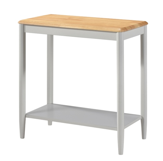 Altona collection with light oak tops, in solid hardwood, stone grey painted. Chamfered table tops with rounded legs. Chairs have charcoal fabric seat pads.