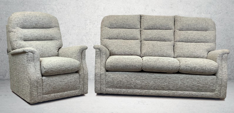 The Amy upholstery collection consists of a three, two seater sofa, armchair, recliner chair and footstools. British made in a large choice of fabrics, with reversible high back cushions and high density reflex foam seat cushions which also can be turned over to prolong the life of the upholstery collection. Padded solid arms complete this traditional style collection. Matching arm caps or arm throws are available as extras.