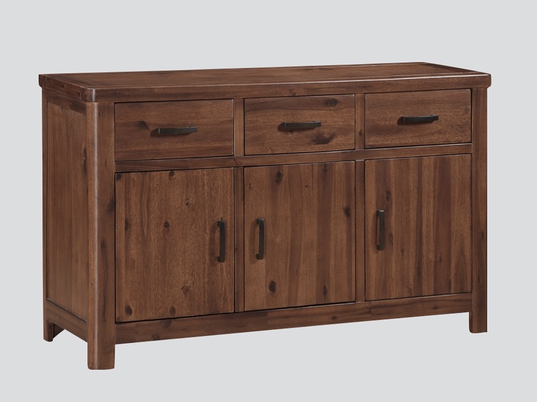 The Andorra is a rich, elegant contemporary collection using traditional solid dark acacia wood and acacia veneer with curved tops, paired with black metal handles.