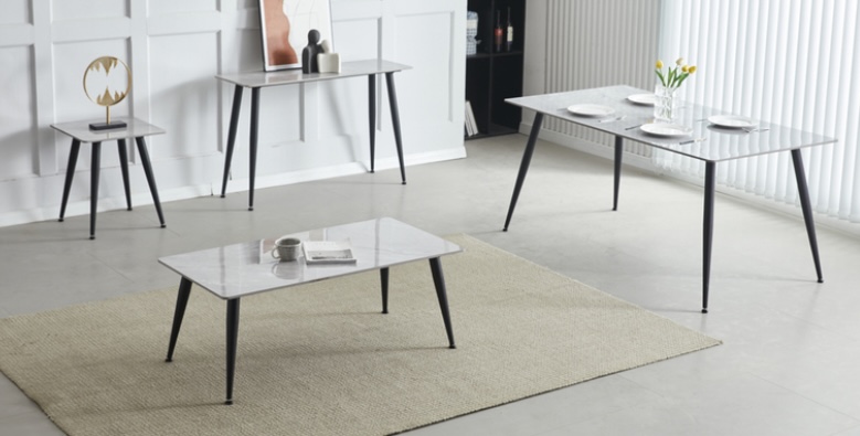 The argenta is a modern luxury table in sintered grey stone with rounded corners and black metal legs. Available in two sizes 160cm and 200cm. Also in the collection is a console table, a coffee table and a end table. Oliver Chairs available in four fabric colours, dark grey, light grey, ivory and tan.