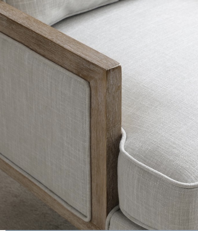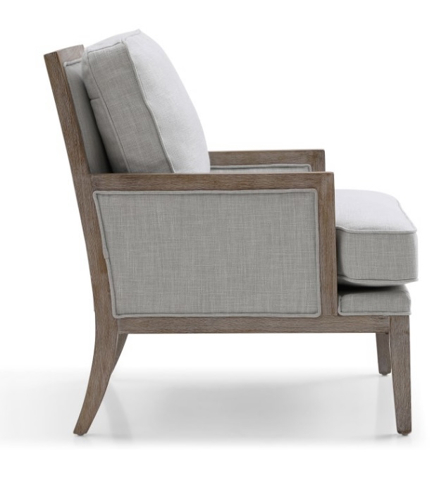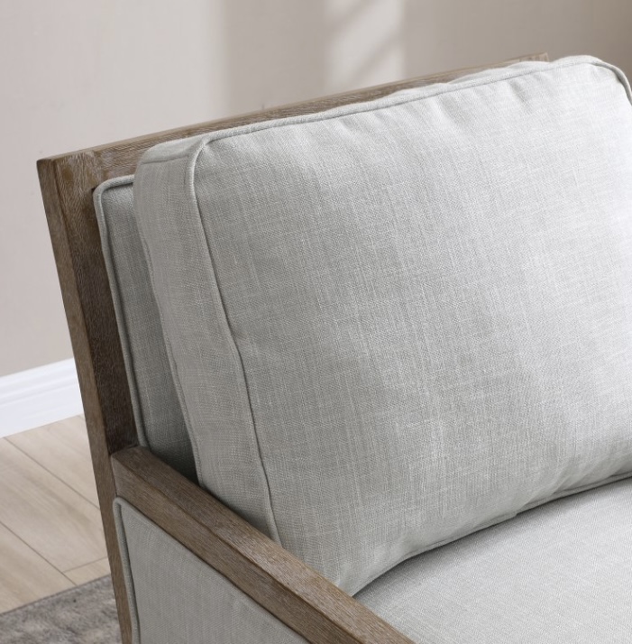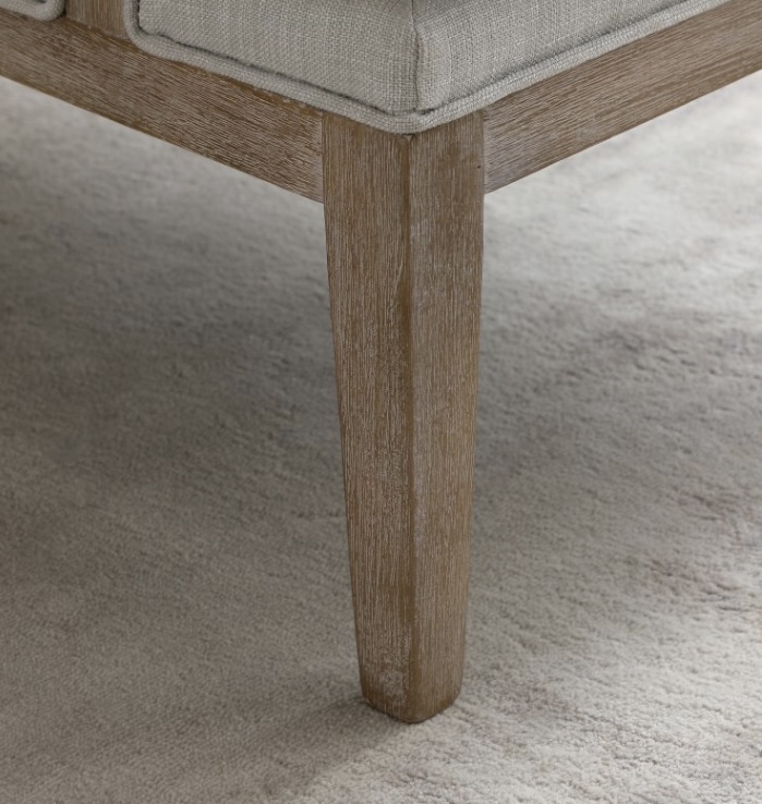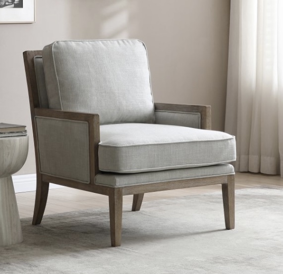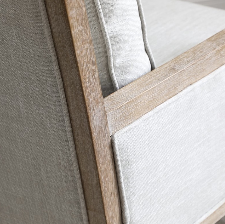 Beatrice accent chair with natural fabric and washed oak wooden frame.