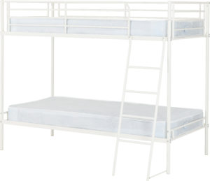 3’ metal bunk bed in white, black or silver finish with 32mm tubing and sloping ladder. Boxed for assembly.