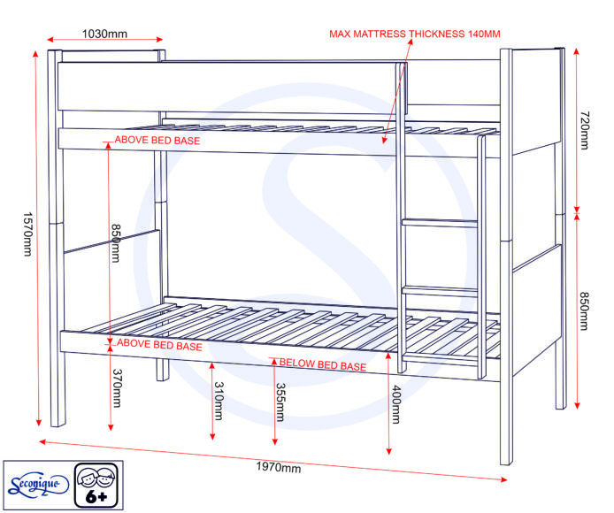 The Bruno bunk bed is finished in a white lacquer finish. Constructed of a solid rubberwood , pine and MDF making this frame a solid construction. Requires 2 x 90 x 190cm mattresses. Boxed for home assembly. Estimated delivery if out of stock 2 weeks.