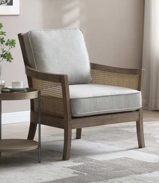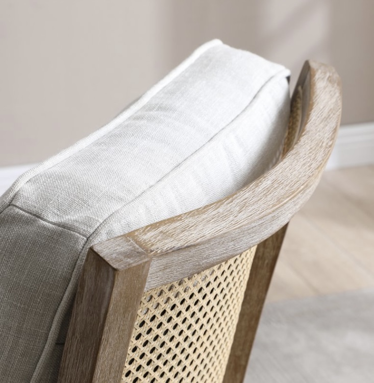The cecilia rattan accent chair is a modern twist on the rattan chair, stylist, but comfortable and practical chair finished in natural fabric with washed oak woodwork and rattan detail.