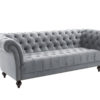 The Chesterfield collection comprises of a 2 and 3 seater sofa with deep buttoning and soft curved arms with studded design and stylish wooden feet. Choice of 2 colours blue and grey velvet like fabric.