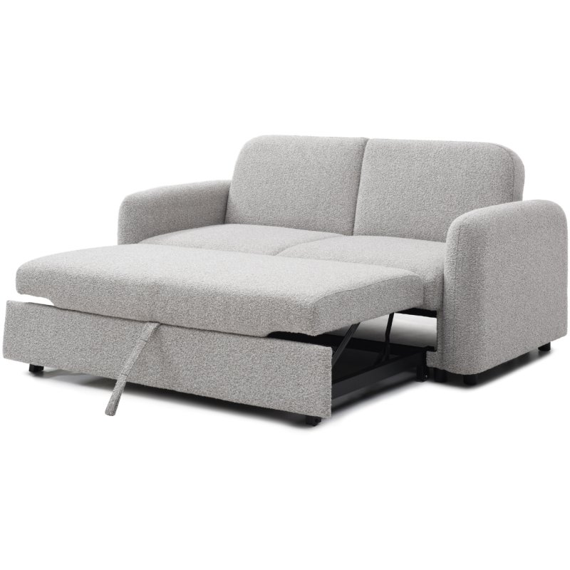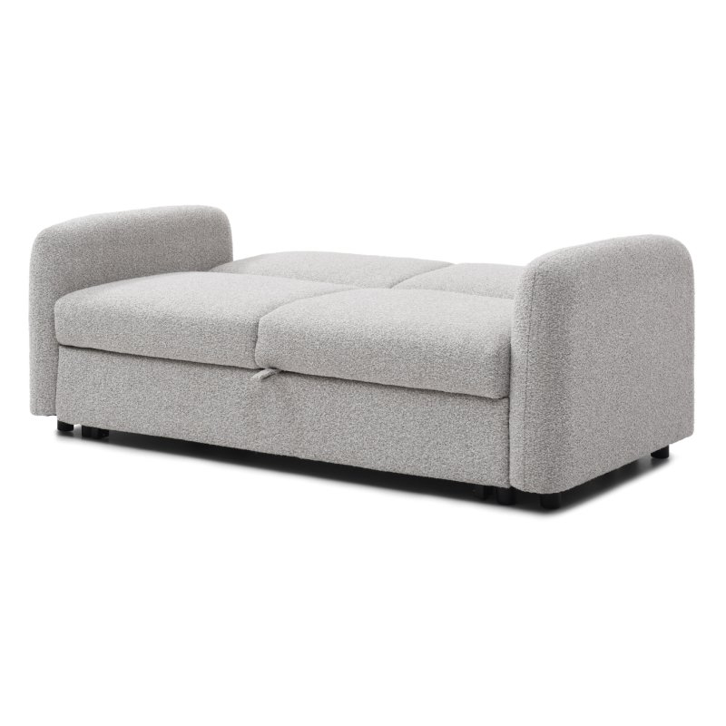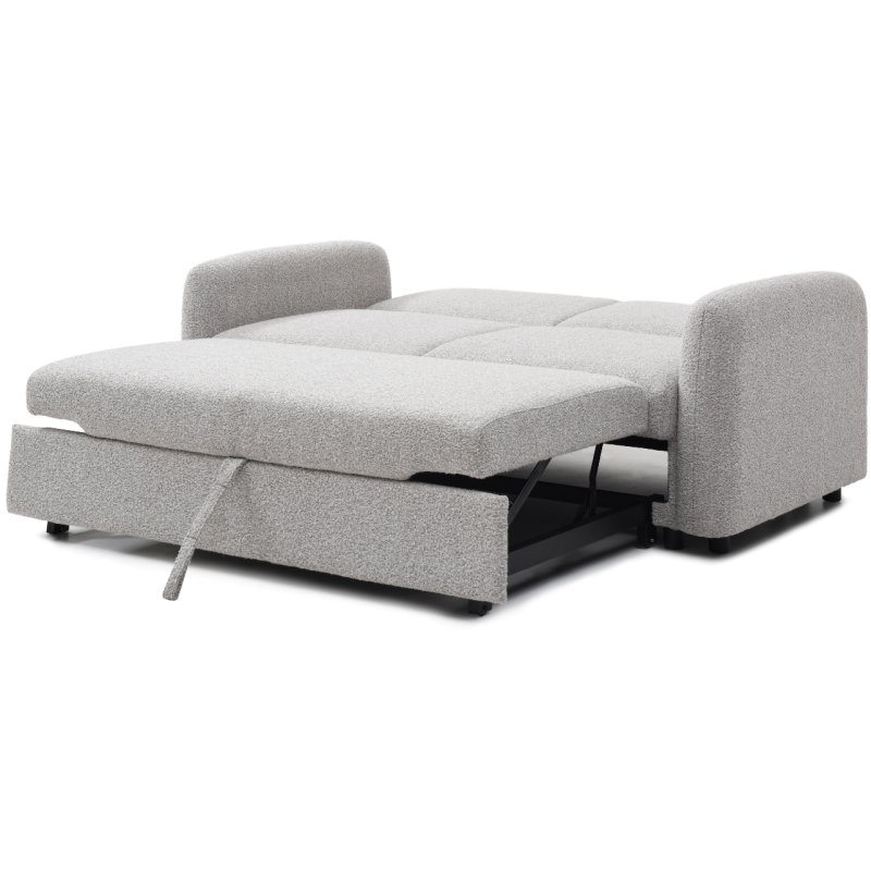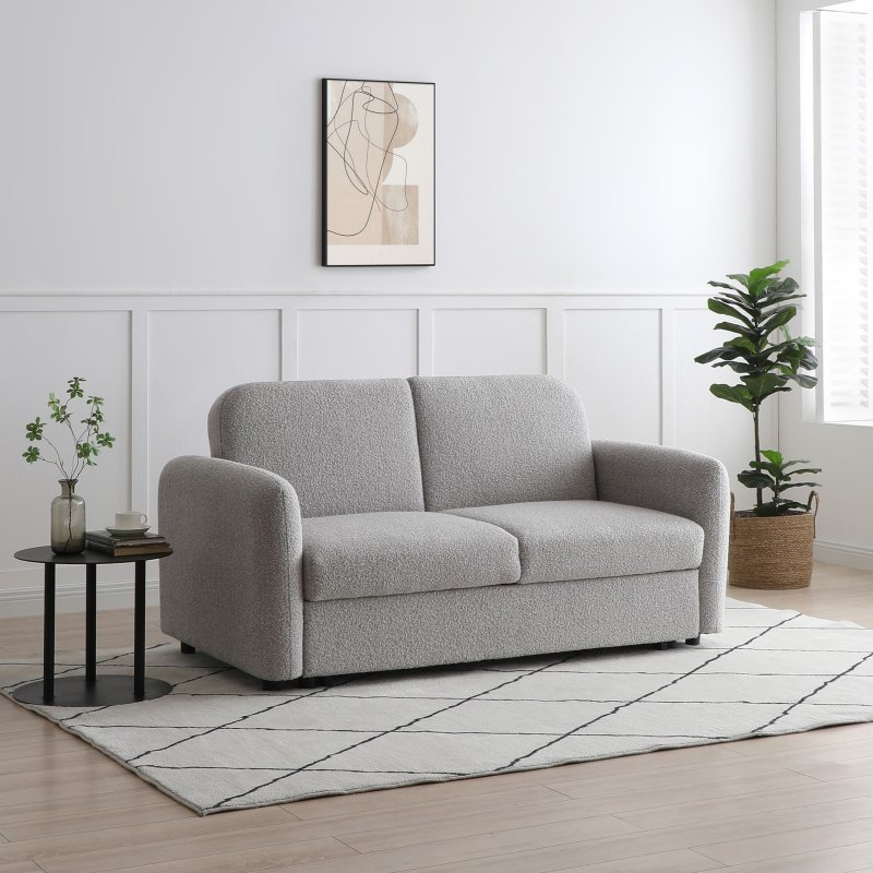 The cloud 2 seater pop-up sofa bed features a pull-out mechanism with a click clack back. With soft rounded edges, cushions and a soft boucle light grey fabric. This new range includes a corner sofa-bed and a 2 seater sofa-bed.