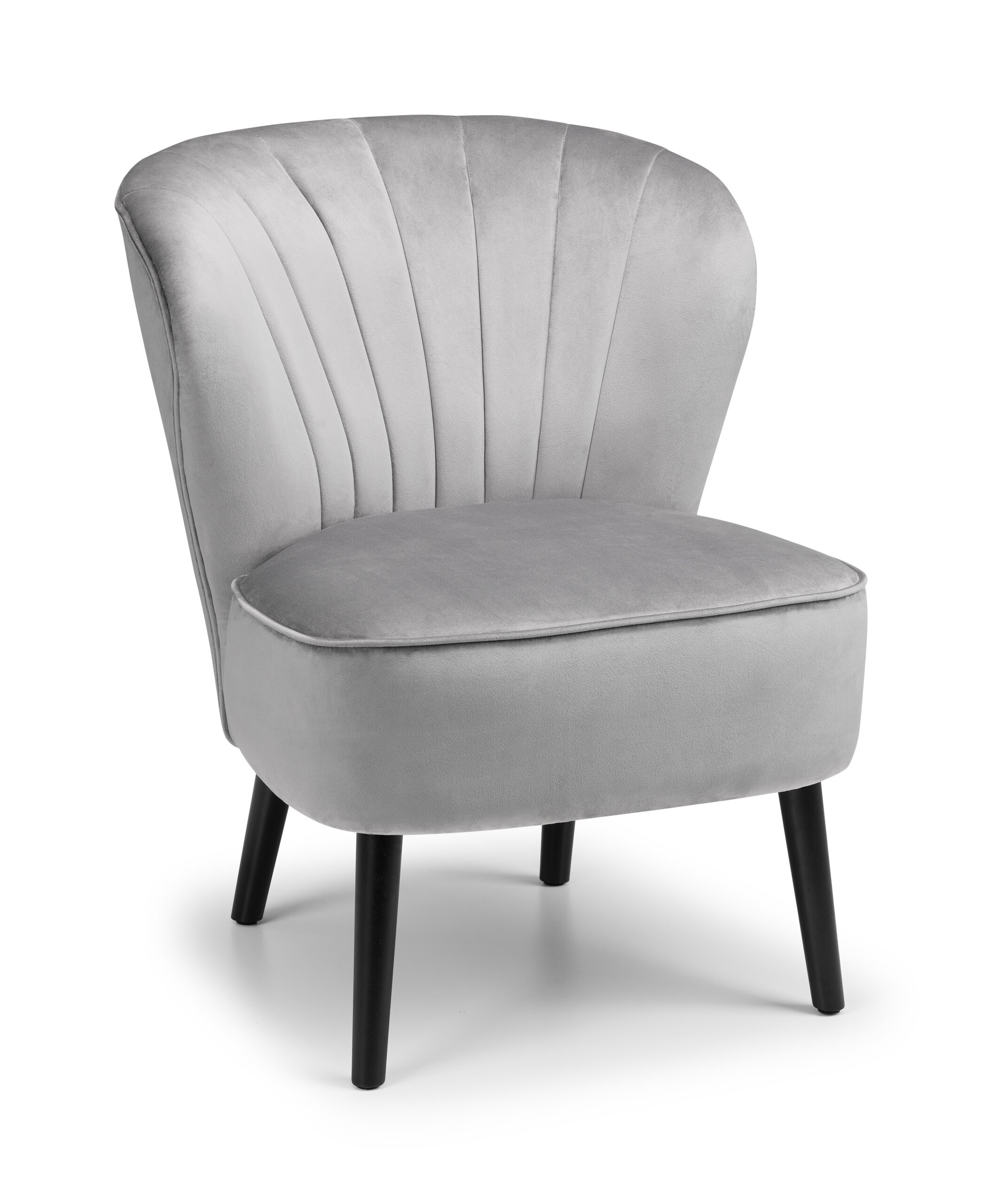 The Coco chair is ideal for a bedroom or an accent chair, finished in a light grey or stunning blue velvet fabric with black tapered legs.