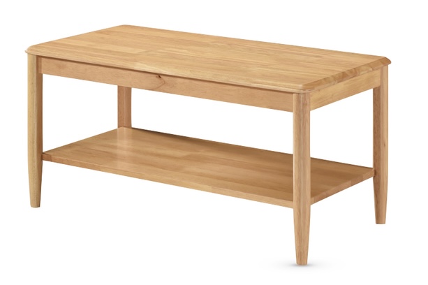 Cologne in light oak finish in solid hardwood with chamfered table tops and rounded legs.