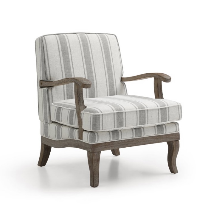The cowell accent chair is a comfortable accasional chair that will add class to any room, with wooden frame and available in 2 colours of fabric, linen cream and linen stripe.
