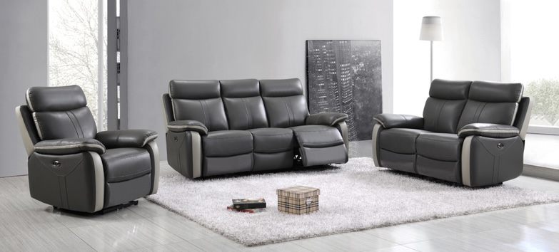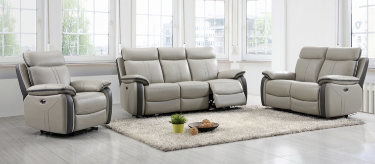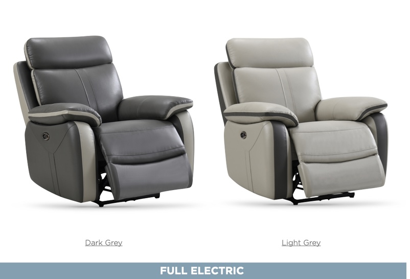 The Covington full leather and leather match electric recliner suite with USB socket. Indulge in the world of comfort and style with this exquisite model that combines the finest materials, innovative features, and modern technology. The recliner mechanism, allowing you to effortlessly adjust your seating position at the touch of a button. Available in two on trend colours dark gray and light grey.