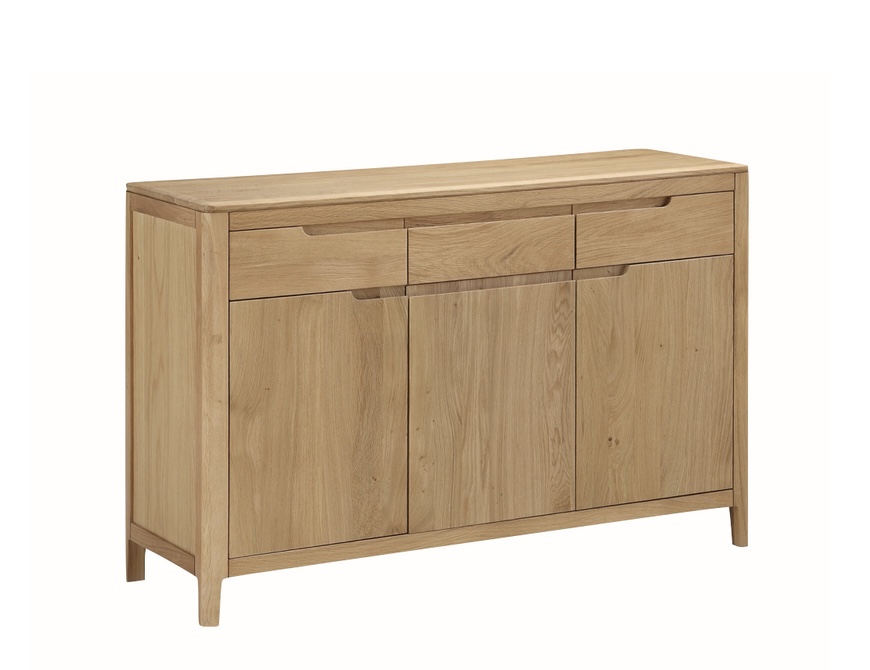 The Dunmore oak collection is a stunning contemporary design with traditional materials. Made of solid oak and oak veneer, it will take pride of place in any room. The dining chairs are matched with a charcoal grey fabric seat pad.