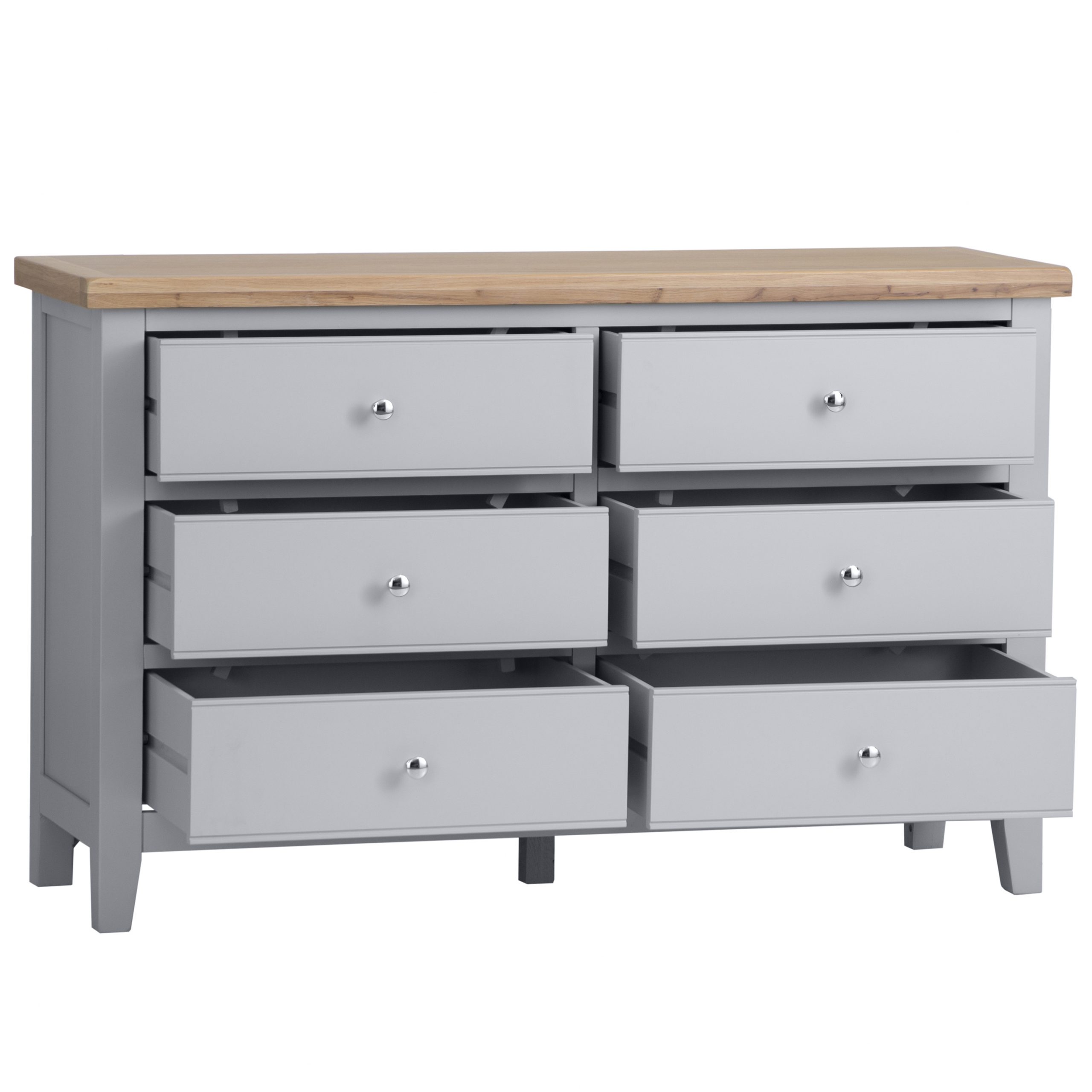 The Eastry range is available in grey or white painted with washed oak tops and chrome handles. The range is available in bedroom or lounge/dining rooms. Fully assembled except bed frames, wardrobes semi assembled.