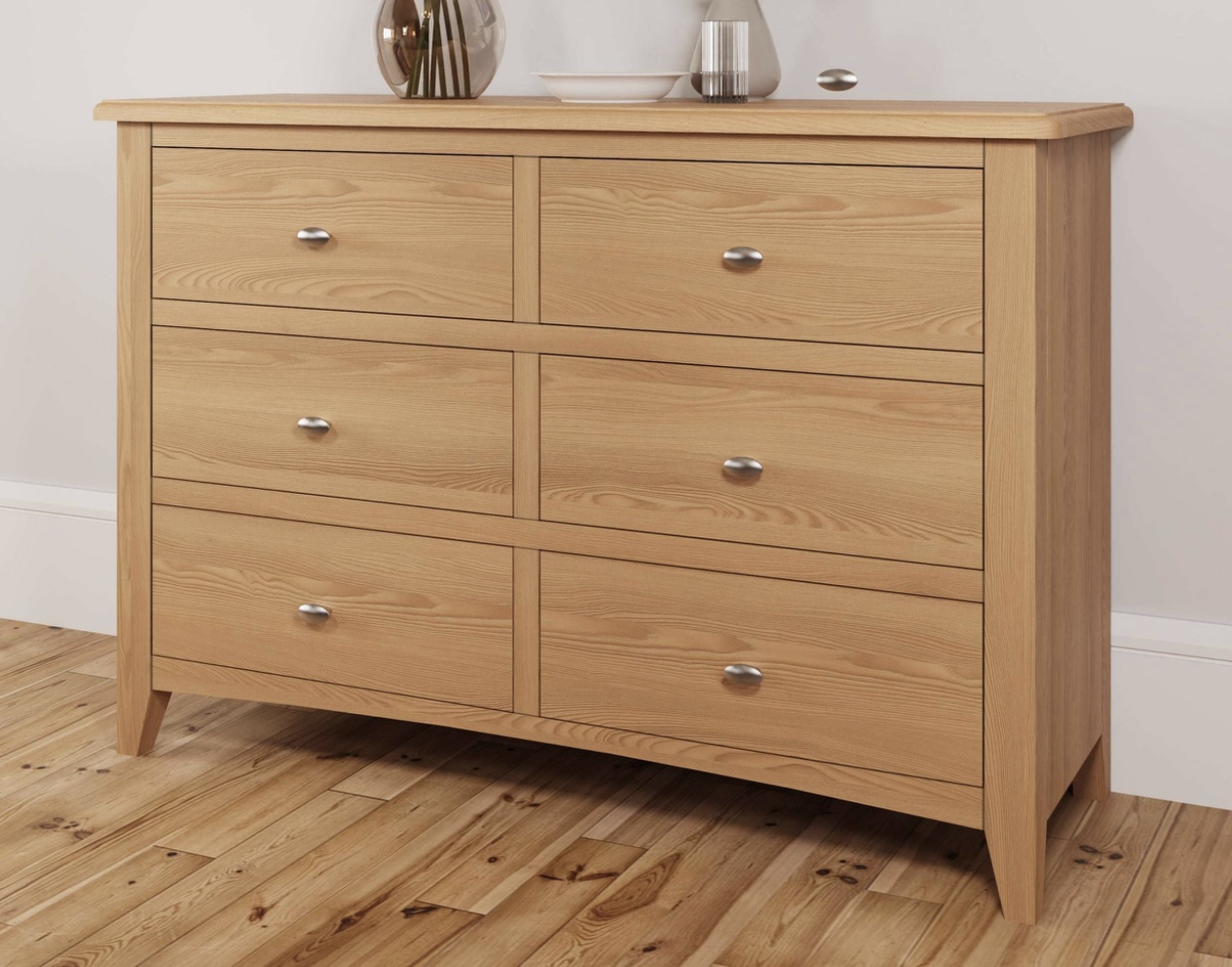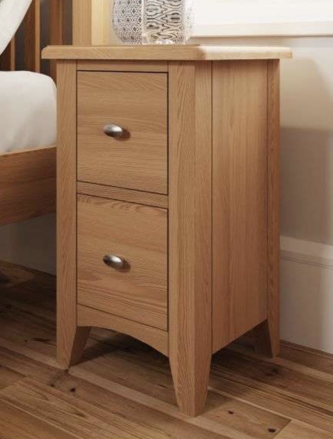 The galaxy oak collection is not only beautiful but offers exceptional value for money, featuring rounded corners with bevel detailing to the tops and tapered legs, this collection is finished in a light oak with brushed metal handles.