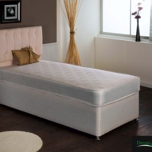The Geranium divan set comprises of a 13.5 gage open coil quilted mattress with a divan base on castors. The mattress is soft to medium feel and is 23cm deep. Available in sizes 3′, 4′, 4’6, and 5′.