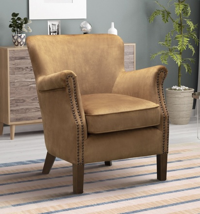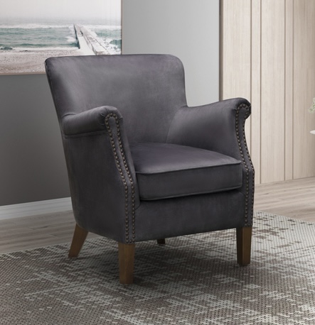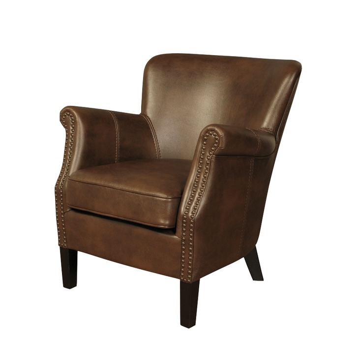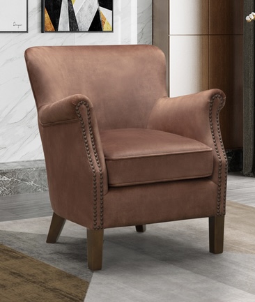 The Harlow accent chair is a classic style chair that will bring comfort and elegance to any room. Available in six vintage fabric colours, charcoal, caramel, copper, coral, pewter grey, and steel blue, and three leather air fabric colours burgundy, brown, and tan all with dark wooden legs.