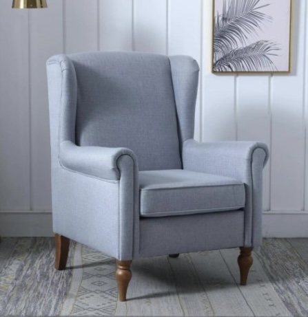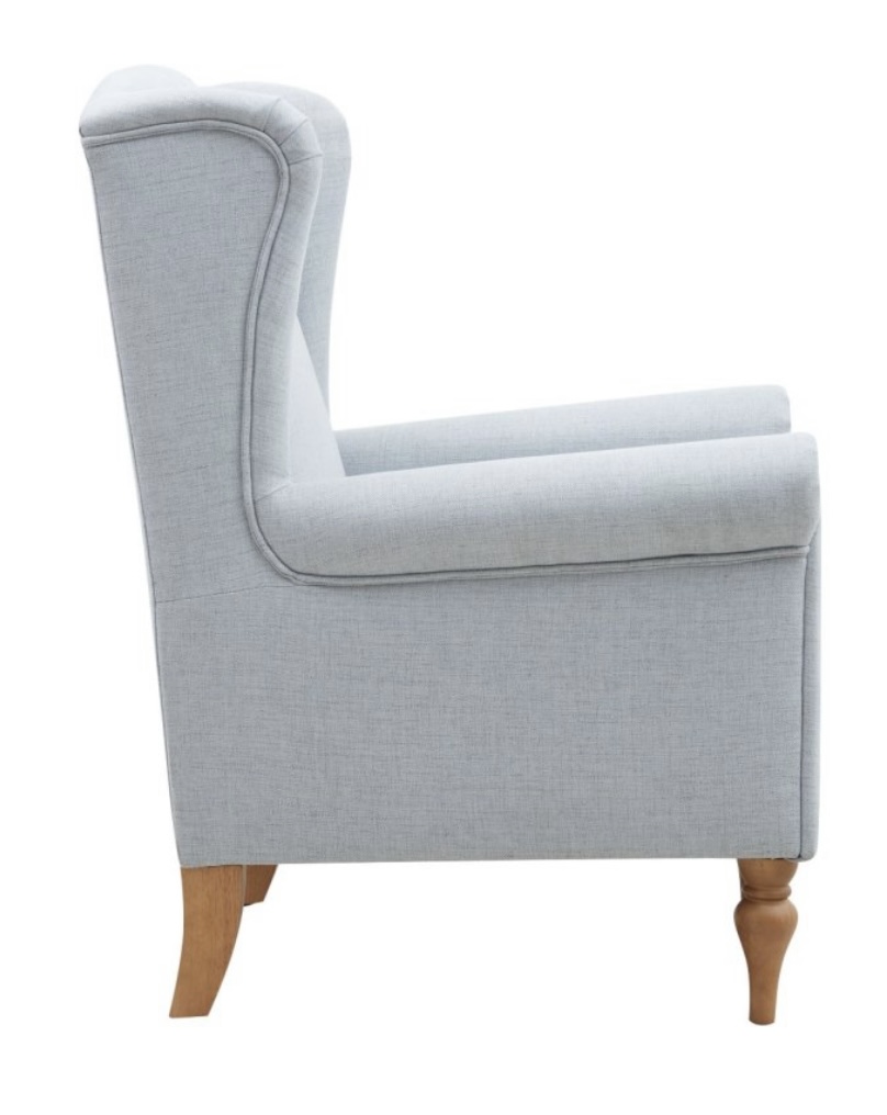 The Harvard wing chair is traditional but not dated wing chair with scroll arms and piping detail and turned oak legs. Available in 2 fabric colours grey and natural.