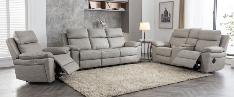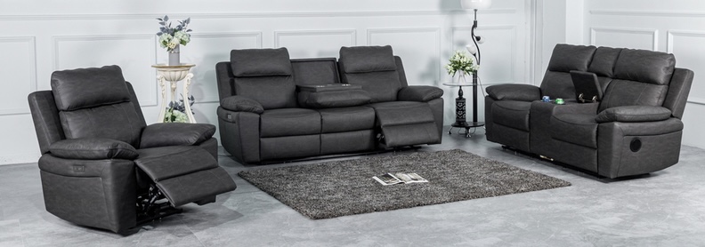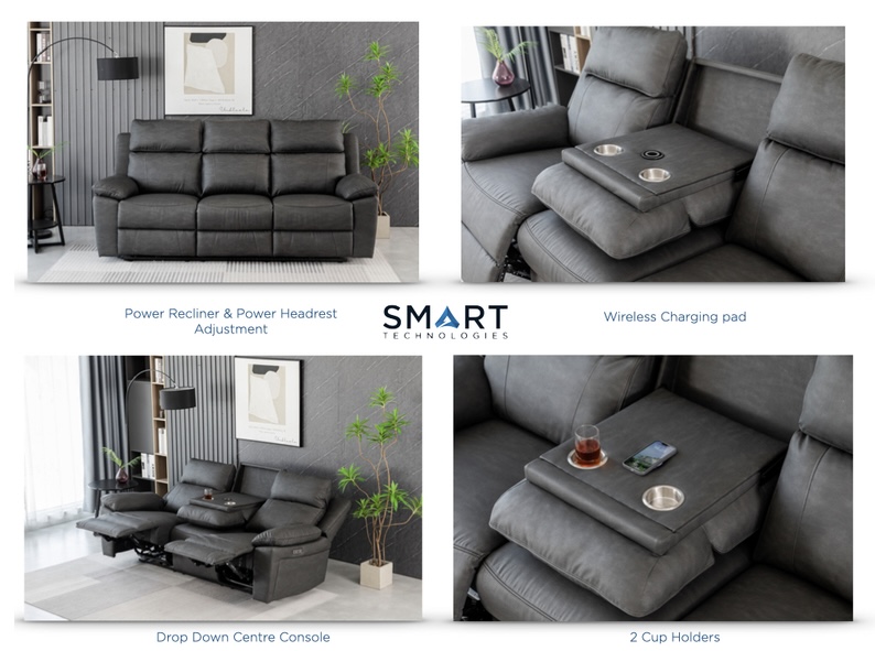 Elevate your relaxation experience with the state of art electric reclining suite, where cutting edge technology meet’s unrivalled comfort. Huntington 2 seater and 3 seater sofas offer immersive sound with Bluetooth speakers, cooling cup holders and say goodbye to tangled cords with our built in wireless charging pad. Available in two colours choices, dark grey and silver grey.