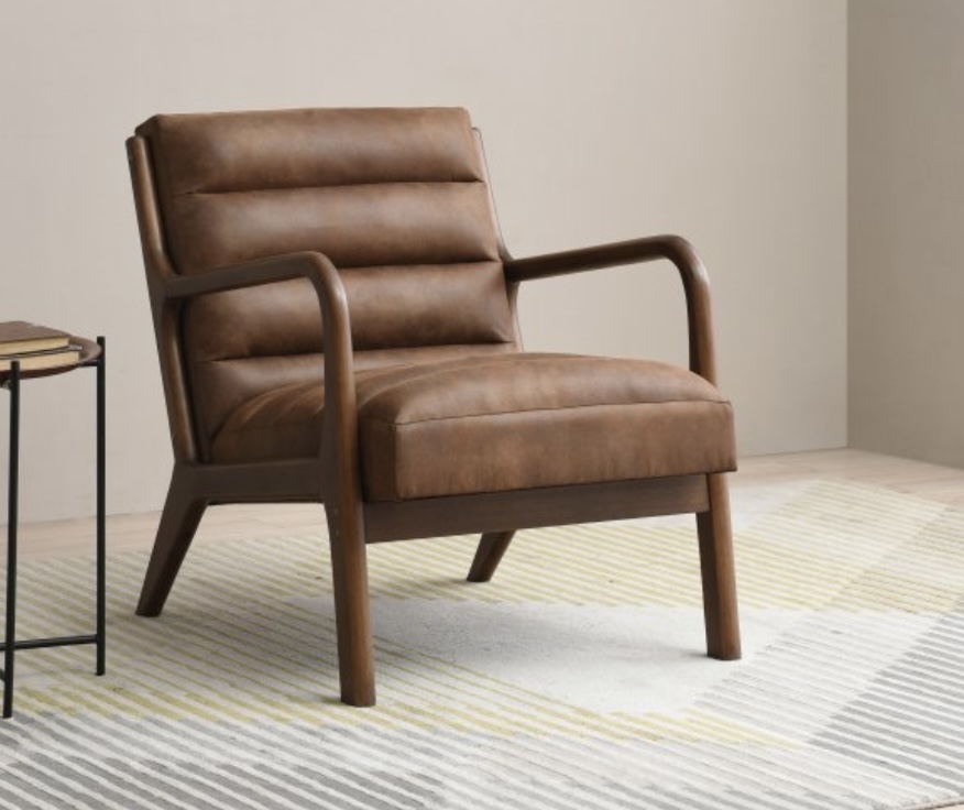 The Inca chair, a little modern, a little rustic, but definitely a classic. With padded back and seat and accented with a stained wooden brown frame, available in PU brown or chenille fabric colours, navy, natural and green.