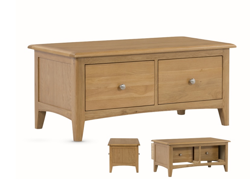 The Kilkenny is crafted from solid oak and oak veneers. With its modern look, with elegant clean lines, the contemporary collection offers curved edges and rounded corners with tapered legs and dovetail drawers with chrome handles.