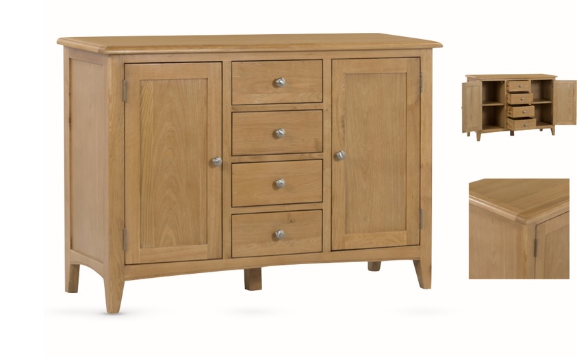 The Kilkenny is crafted from solid oak and oak veneers. With its modern look, with elegant clean lines, the contemporary collection offers curved edges and rounded corners with tapered legs and dovetail drawers with chrome handles.