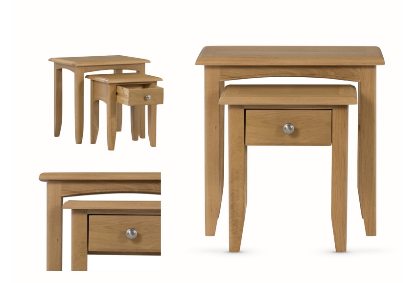 The Kilkenny is crafted from solid oak and oak veneers. With its modern look, with elegant clean lines, the contemporary collection offers curved edges and rounded corners with tapered legs and dovetail drawers with chrome handles.