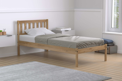 The Lisbon is a pine bed frame finished in a rustic wax with solid pine slats and support legs on double sizes. Available in sizes 3′, 4′, 4’6. Boxed for home assembly. Estimated delivery if out of stock 2 weeks.