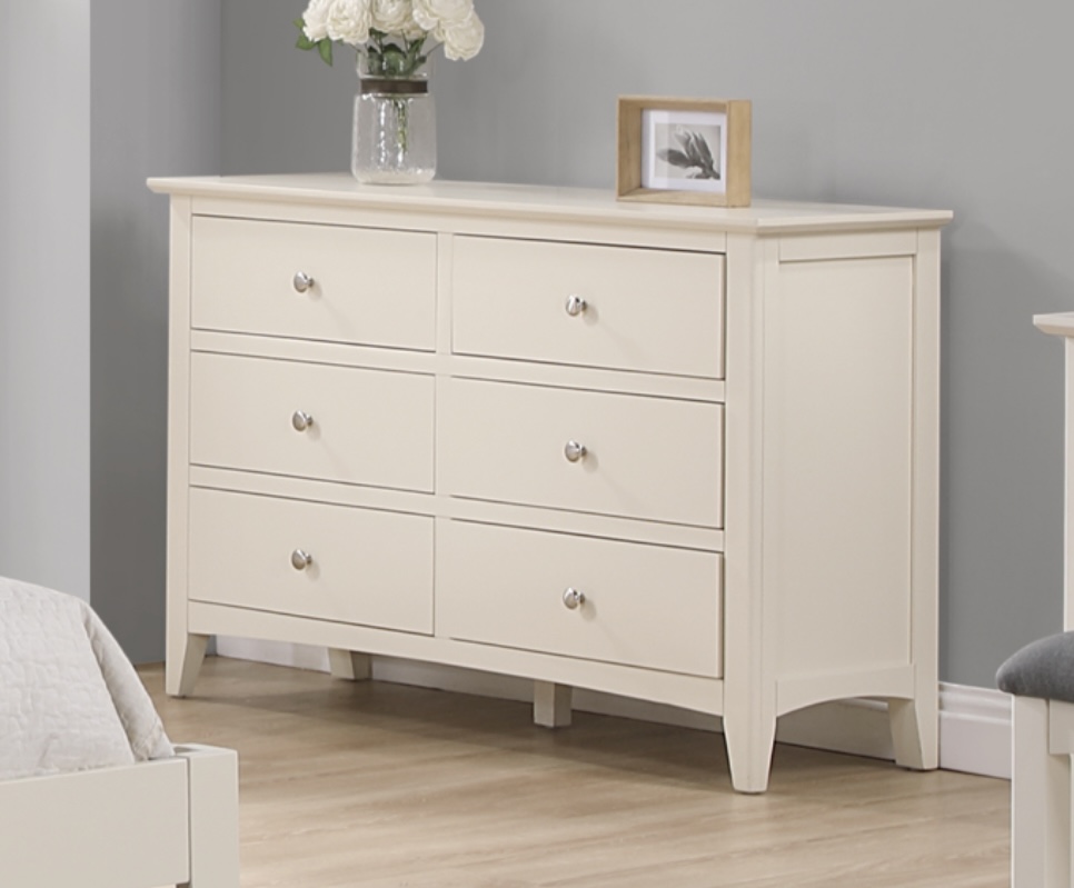 Transform your bedroom into a haven of timeless elegance with this contemporary exquisite collection. With curved edges, tapered legs and dove tailed drawers, paired with gold handles.