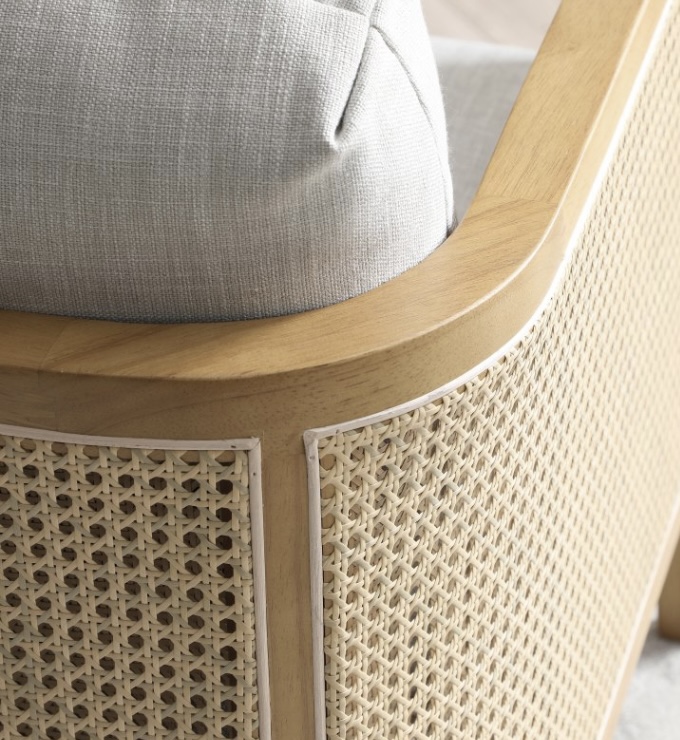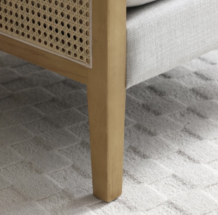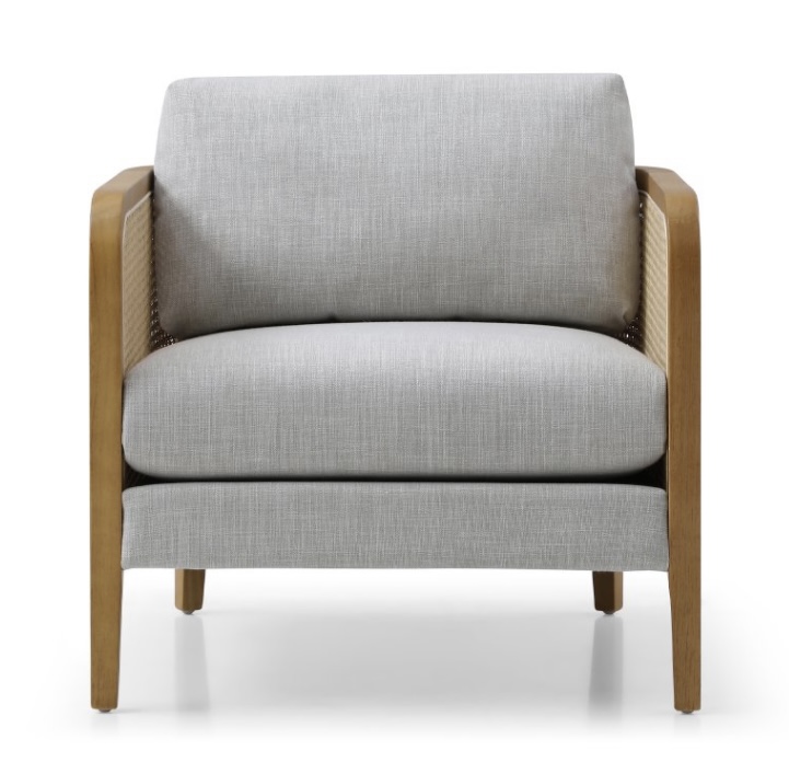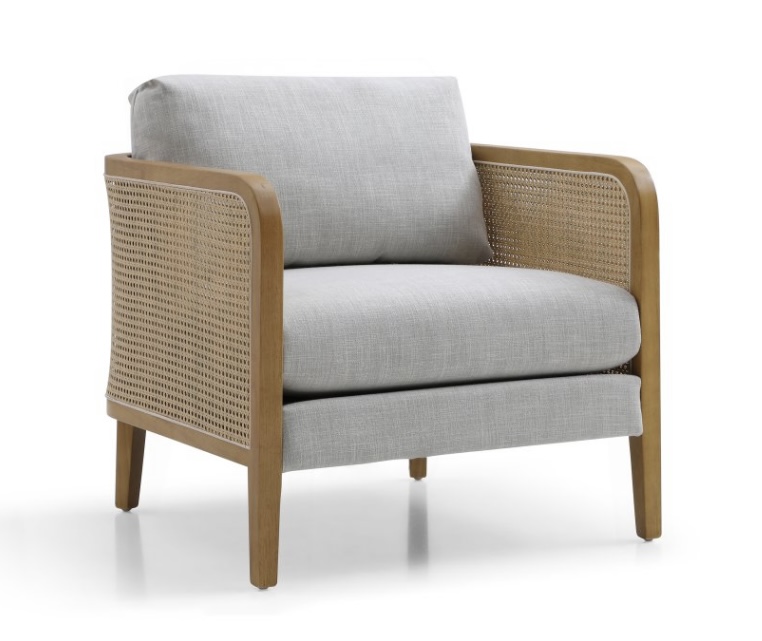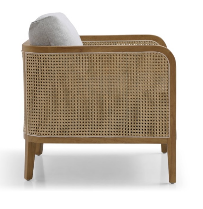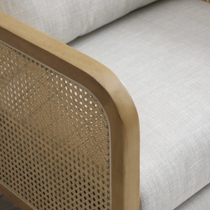 Mabel rattan chair, is a modern take on the rattan chair, both stylish and practical, finished with natural fabric with light wood.