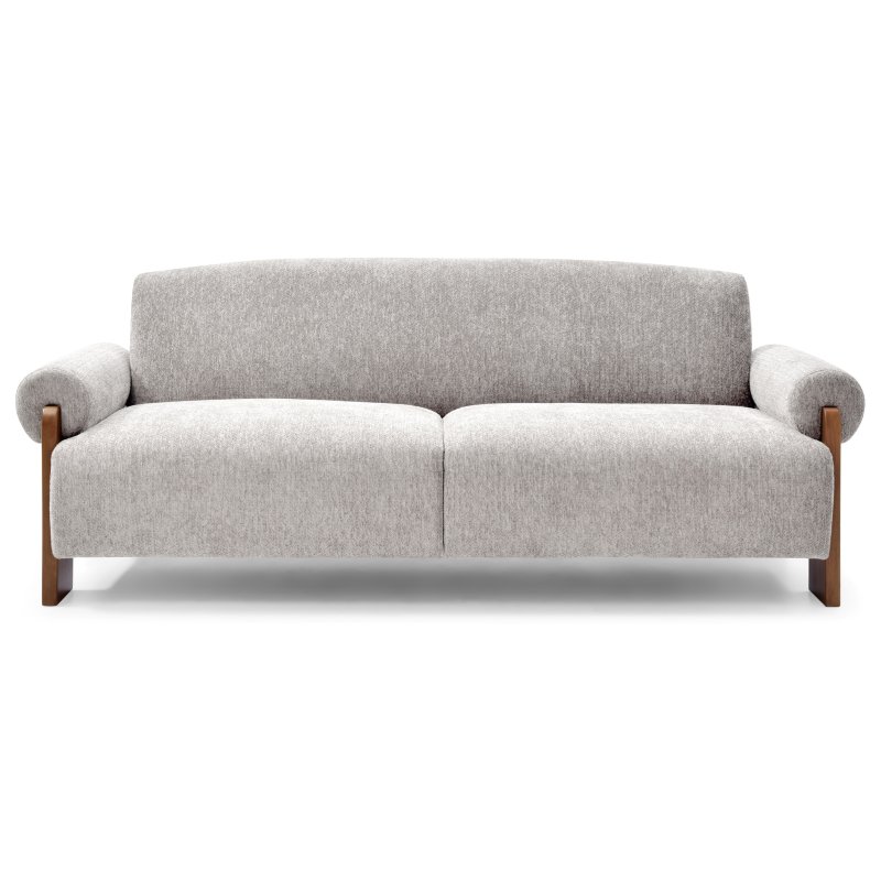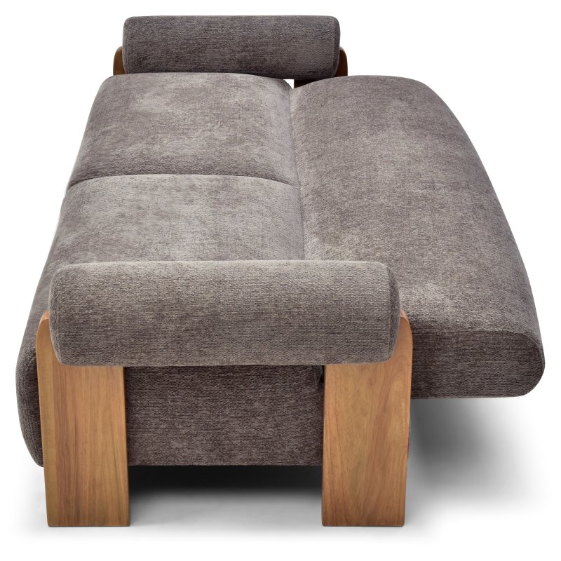 The mila sofa-bed is a contemporary sofa-bed with bold lines featuring large barrel-like comfortable arms, plush seat and back with solid show wood featured on the legs. Available in chunky soft chenille fabric in three colours, mocha, orange and natural.