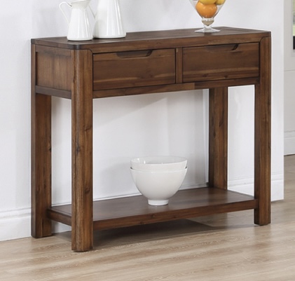 Experience the perfect fusion of classic charm and contemporary design with the Monterey acacia collection. Made of solid acacia and acacia veneer with rounded corners. Dining chairs have grey fabric seats.