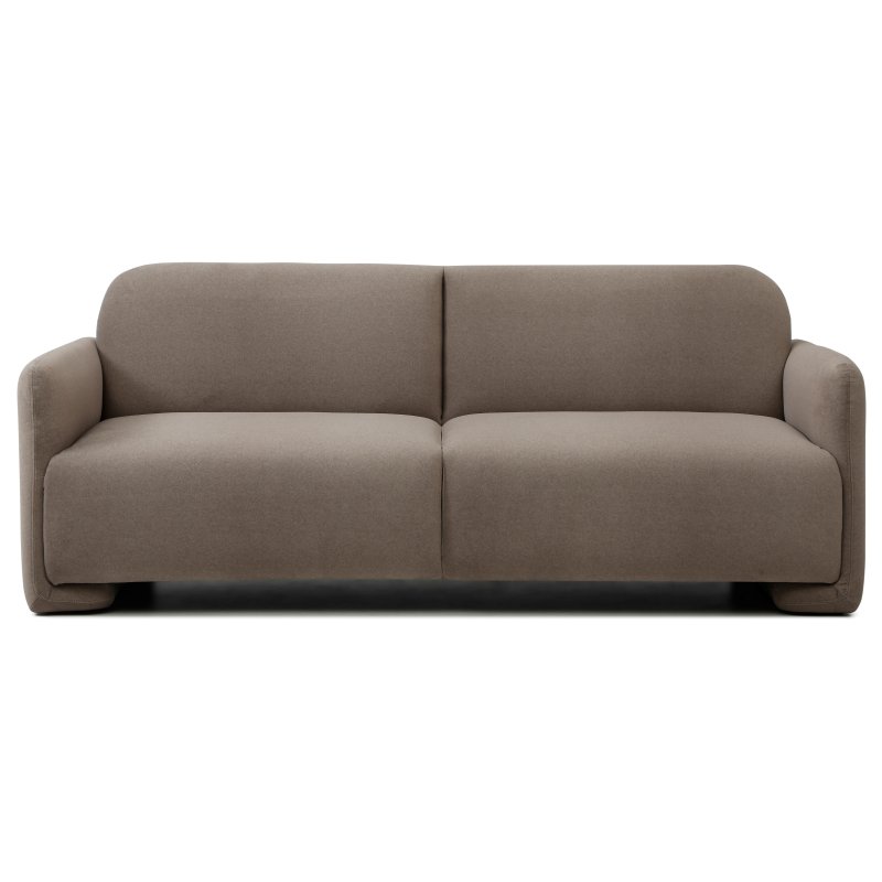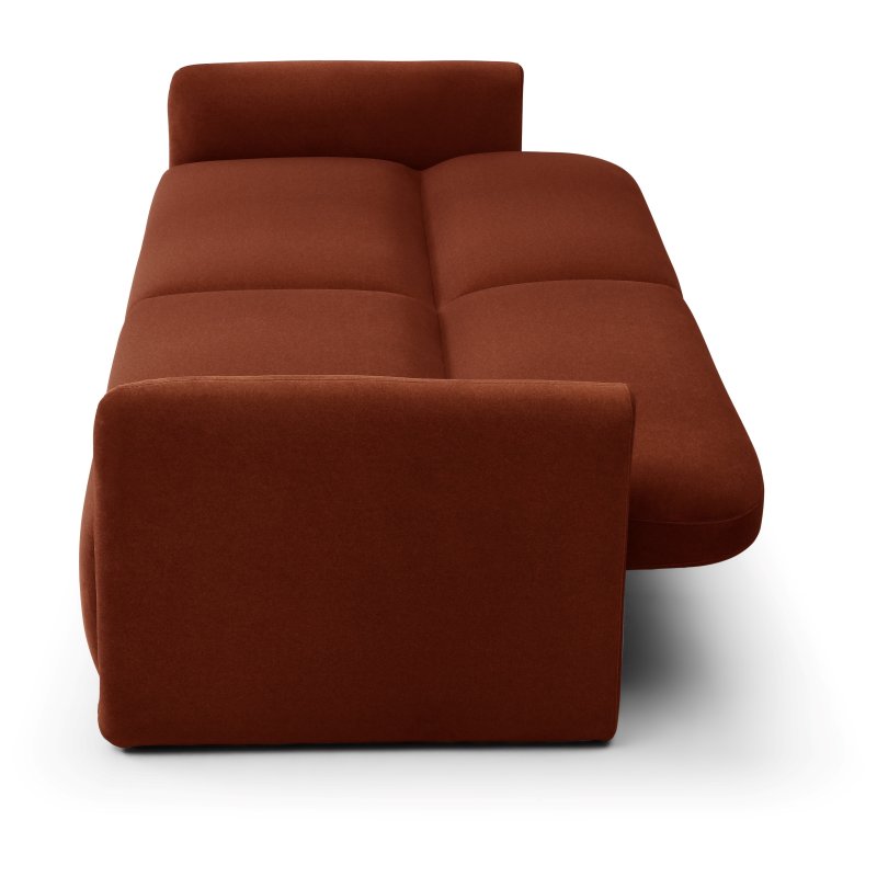 A stylish, modern sofa-bed featuring clean lines and gentle curves, upholstered to the ground in a choice of burnt orange or taupe flat velvet fabric. The click-clack mechanism allows for easy conversion into a comfortable sleeping area. This piece would look great in contemporary or minimalist interiors.