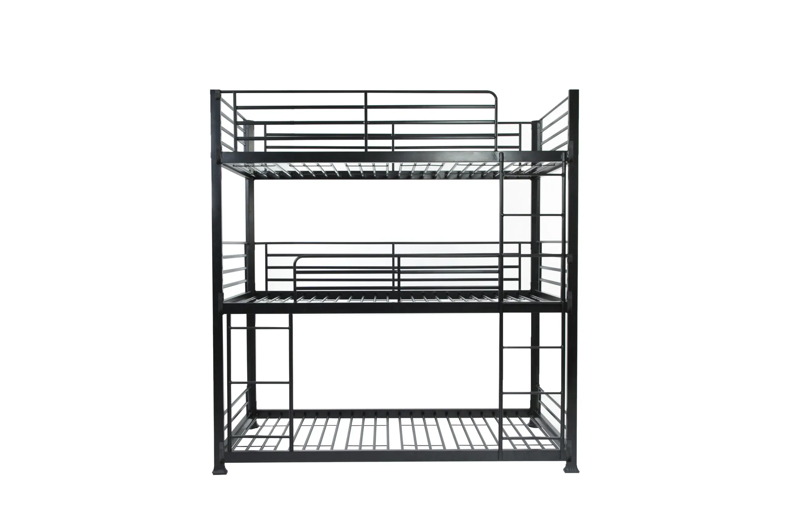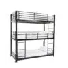 The no bolt 3 tier bunk bed can be assembled quickly, there are no nuts or bolts, so no tools needed apart from a mallet. This is a totally metal construction and even the slats are metal. Requires 3 x 90 x 190cm mattresses.