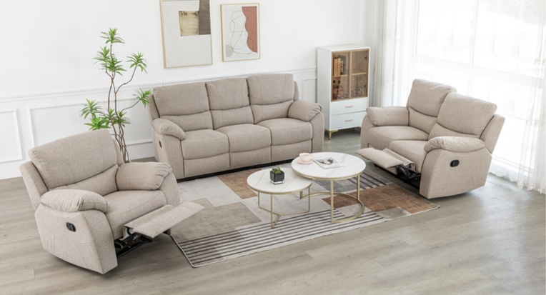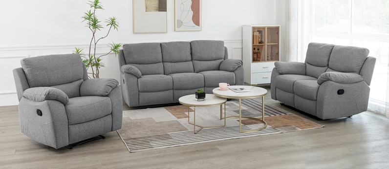 The Nordic suite where traditional design meets contemporary sensibility. With the high headrest and lumbar support for your comfort. You can choose between the fixed model or the manual recliner model. Available in 3 seater sofa, 2 seater sofa and armchair in two stylish colours, dune and grey fabric.