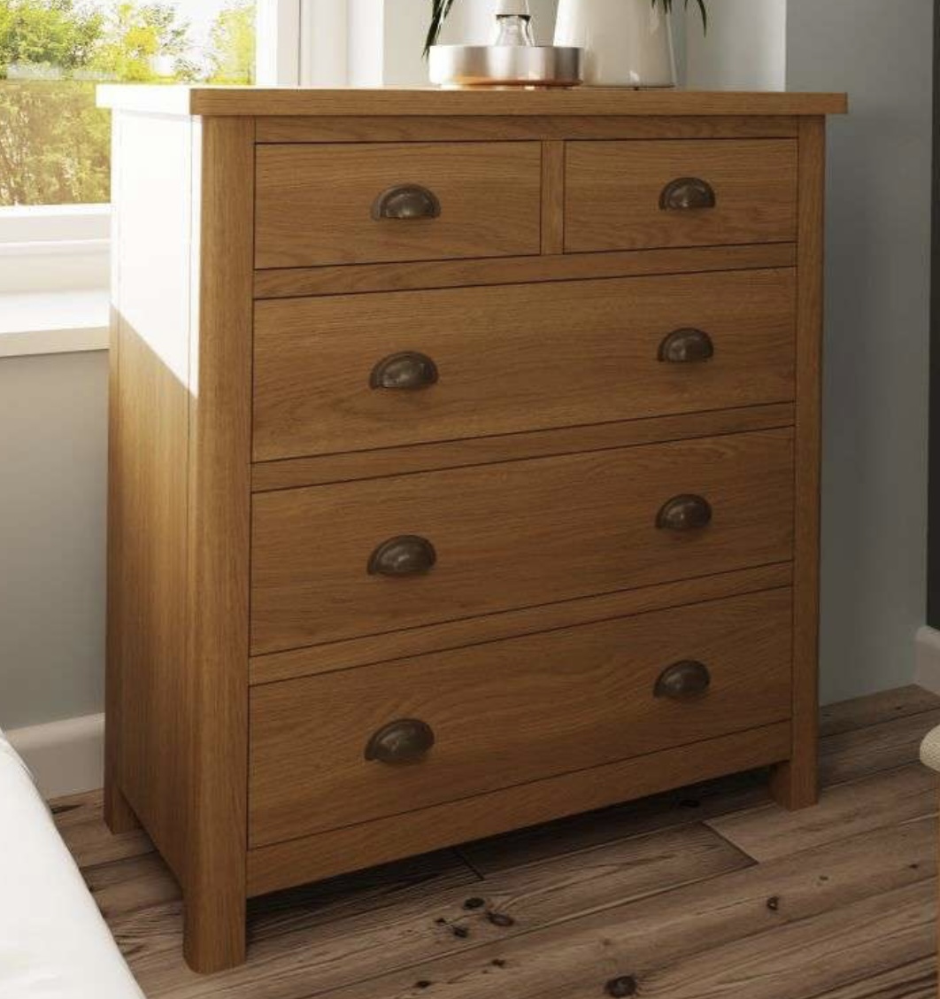 The Ramsgate Oak collection is designed and manufactured to bring you exceptional value. The rustic oak finish with antique style cup handles on drawers and round matching handles on doors with rounded corners means each item is designed to add traditional style to modern homes.