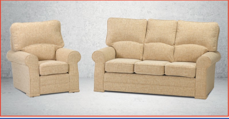 The Samantha upholstery collection consists of a three, two seater sofa, armchair and footstools. British made in a large choice of fabrics, with reversible back cushions and high density reflex foam seat cushions which also can be turned over to prolong the life of the upholstery collection. Padded solid arms complete this modern style collection. Matching arm caps or arm throws are available as extras.