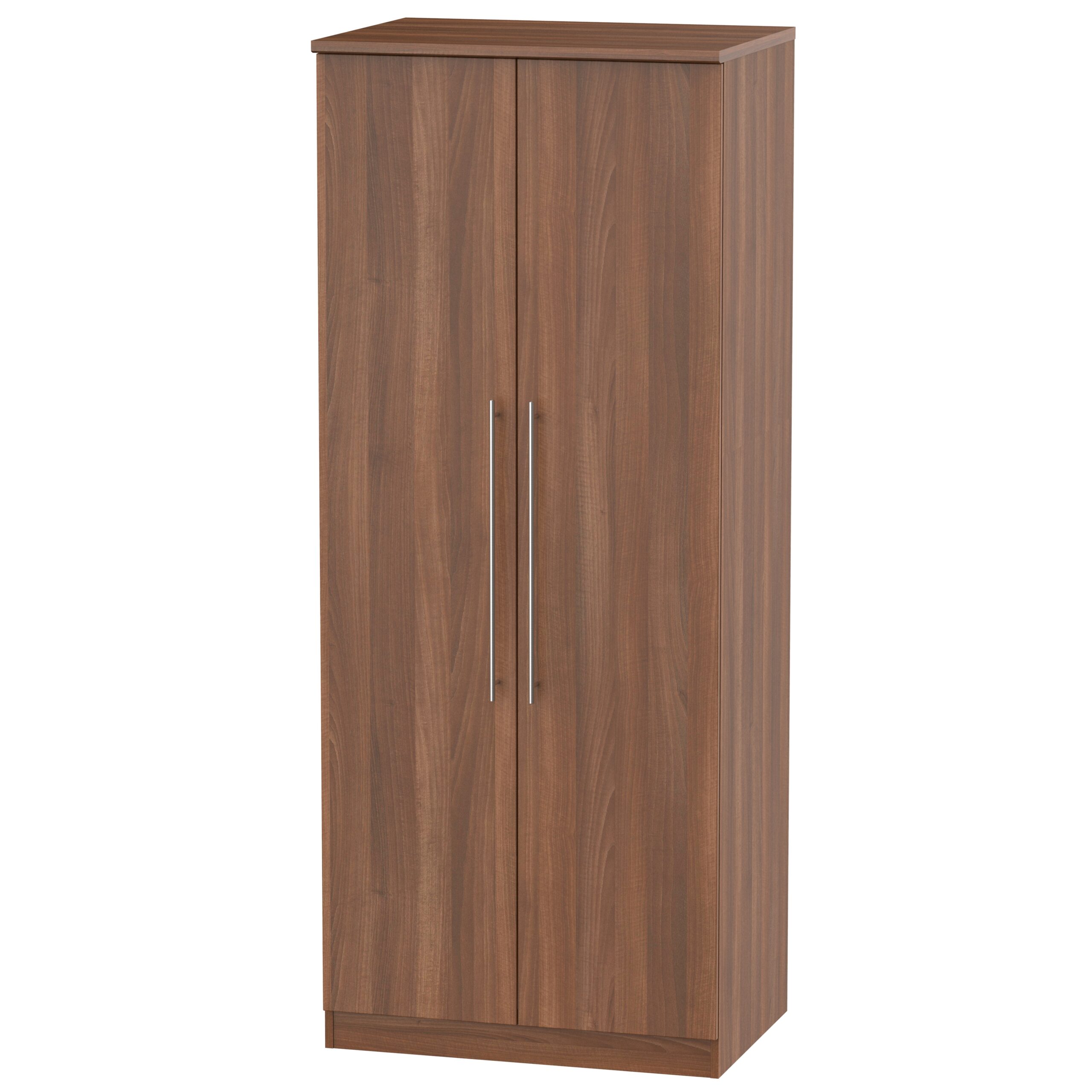 The Sherwood bedroom range is modern looking with large brushed silver barrel handles. British made and fully assembled with large choice of wardrobes, chests, bedsides and more. Choice of colours oak, white, grey and walnut. All drawers have deluxe metal runners. Internal shelf and rail.
