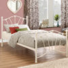 Sophia bedframe is made of steel and painted cream or pink, the base is a srung slatted.A standard 3′ mattress is required. Boxed for home assembly.