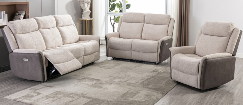The treyson electric recliners are the ultimate in laid back luxury. Available in a three seater, two seater and armchair with full electric control at the touch of a button, with two distinctive colour choices, grey fusion and beige fusion. A USB charger is also included on the control panel as an extra feature for your convenience.
