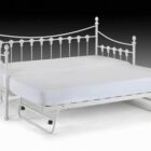 Daybed in stone white finish with sprung slatted base complete with underbed, both bases require standard 90x 190cm single mattresses.(maximum mattress depth 18cm )Underbed raises to the same height of the daybed. Boxed for easy home assembly.